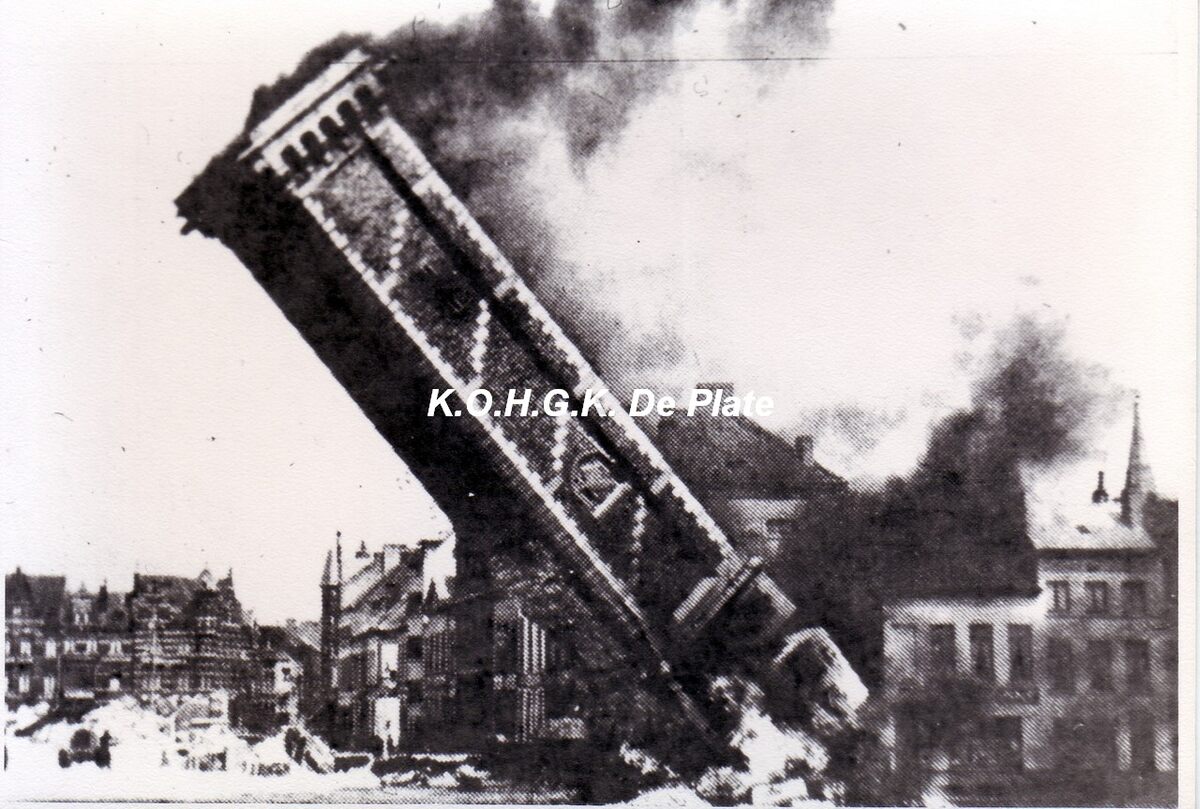 Foto 15 x 10. Met zicht op het Ernest Feysplein gelegen op de Hazegraswijk. De toren valt... men had plannen om er een helihaven te bouwen ! ?... nu 2016 weten we beter wat er allemaal op die ruimte is gekomen, van circus tot jeugdclubs en nu de woontoren "De Mast", het flatgebouw "De Ra" en het grootwarenhuis "Delhaize". (Georges Van Duyvenboden).