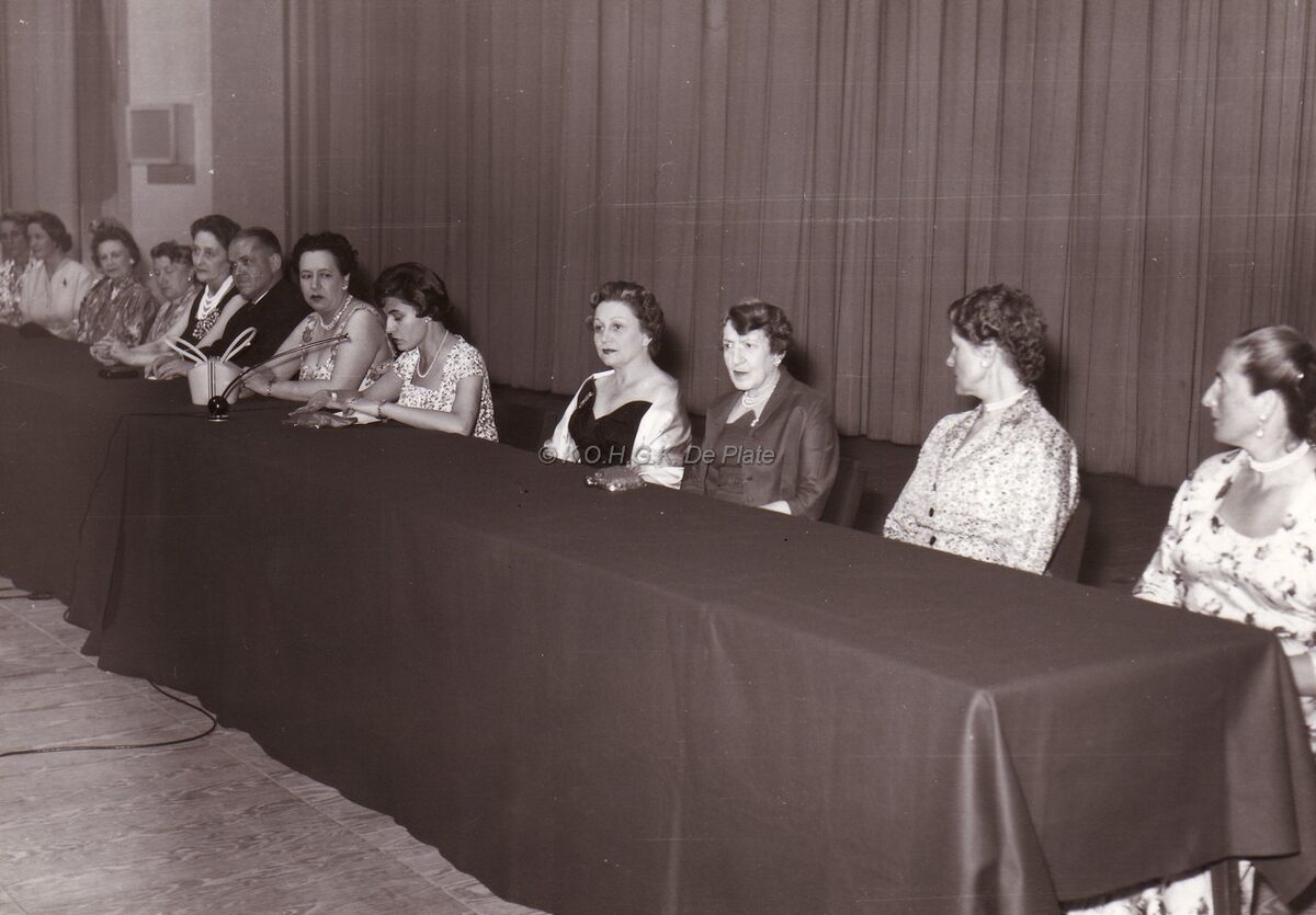 De jury van de belgische Feminaprijs voor de film in het Kursaal. Vierde van rechts, mevrouw Van Glabbeke, zevende, de burgemeester Adolf Van Glabbeke