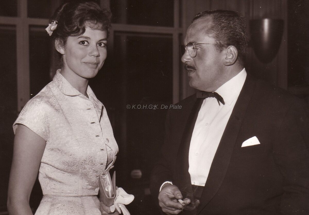 Georgia Moll, Italiaanse filmactrice, in gesprek met Fritz Content tijdens de Faminaprijs voor film in het kursaal