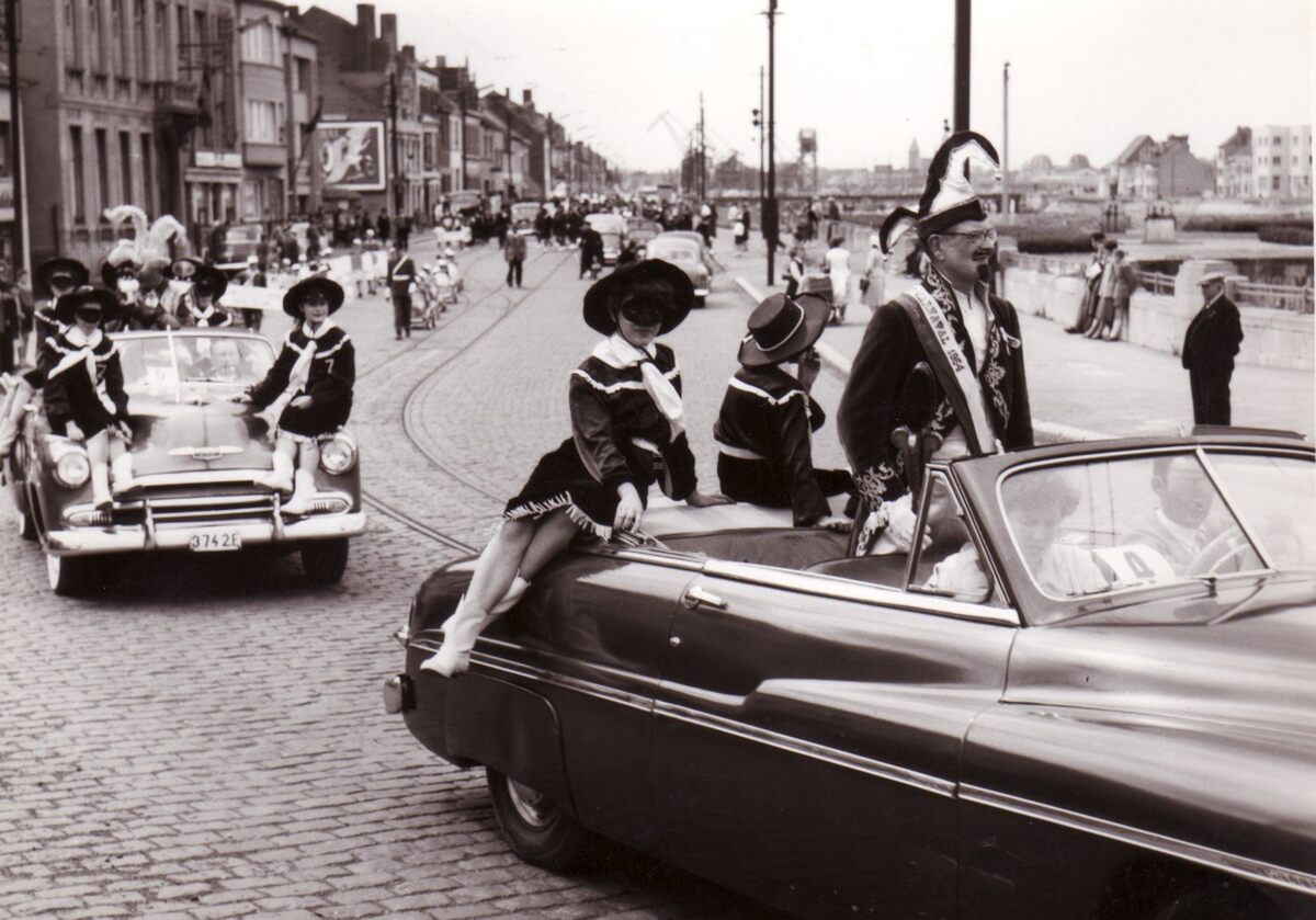 Carnavalstoet aan de Prins Albertlaan,de wagen met prins Carnaval.