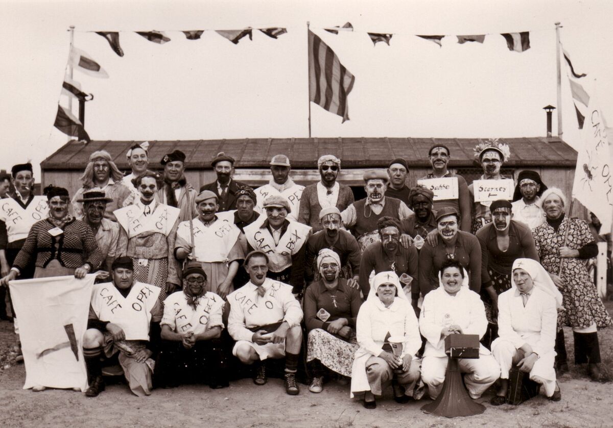 Visserskaai, de carnavalsgroep van Café OPEX (supporters voetbalploeg ASO ?) in de halfvastenstoet.