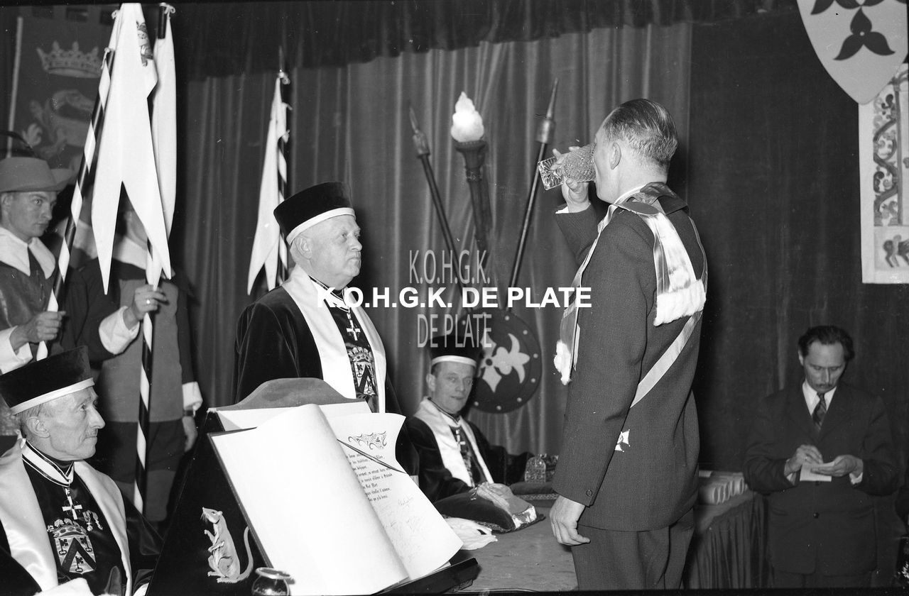 Foto : Confrérie van de Rat Mort. Intronisatie. Kursaal Oostende. 1957