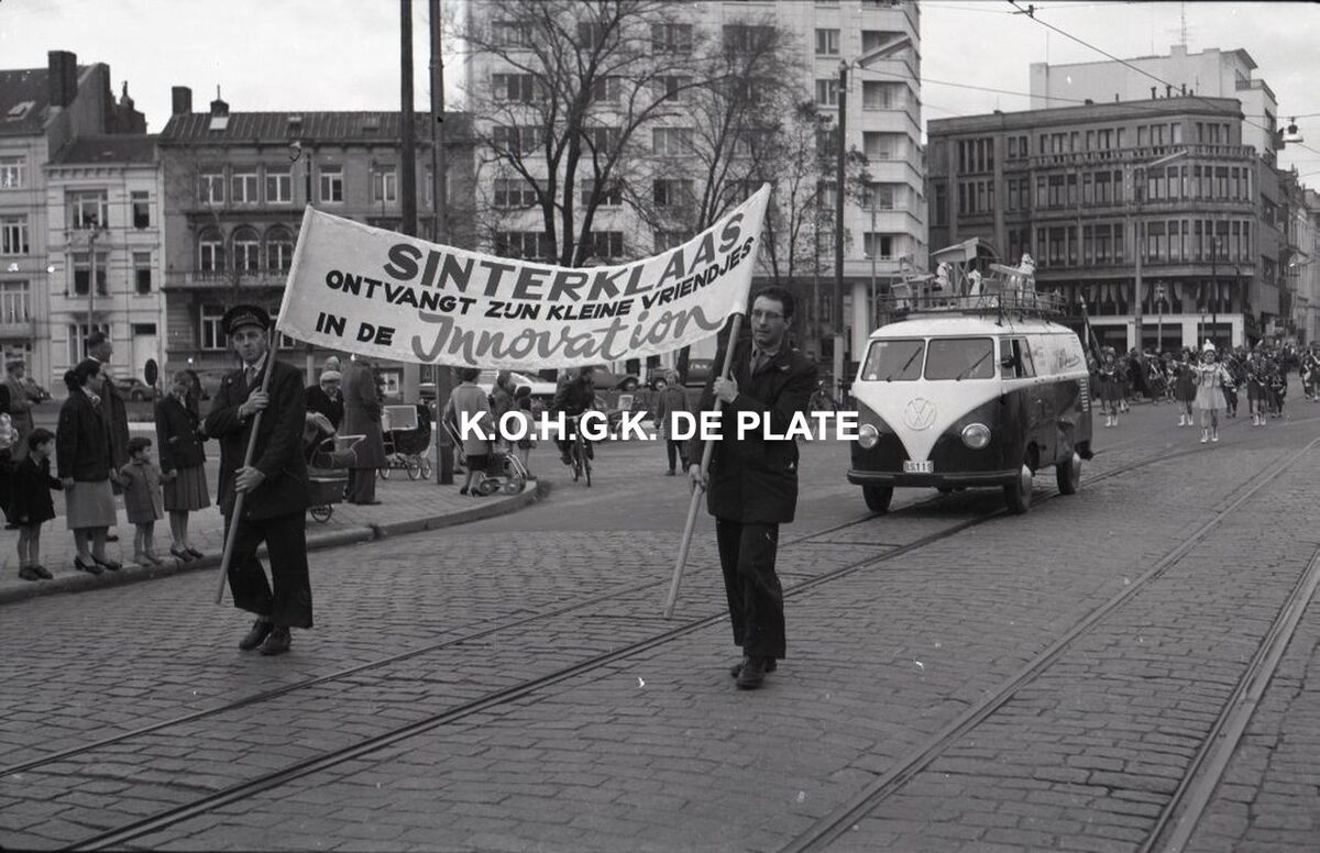 Negatief : 6 x 9 cm. - De stoet in de Vindictivelaan nabij het kruispunt met de Leopold II-laan.