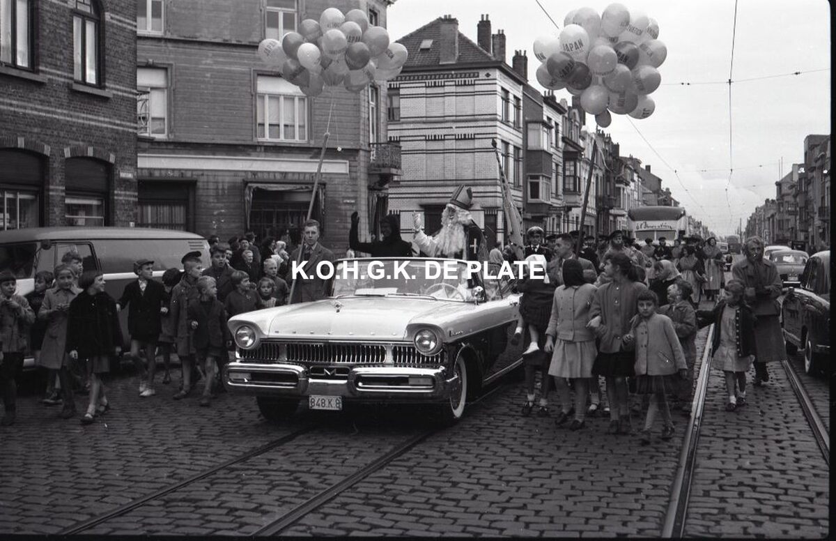 Negatief : 6 x 9 cm. - De stoet in de Torhoutsesteenweg nabij het kruispunt met de Leffingestraat.