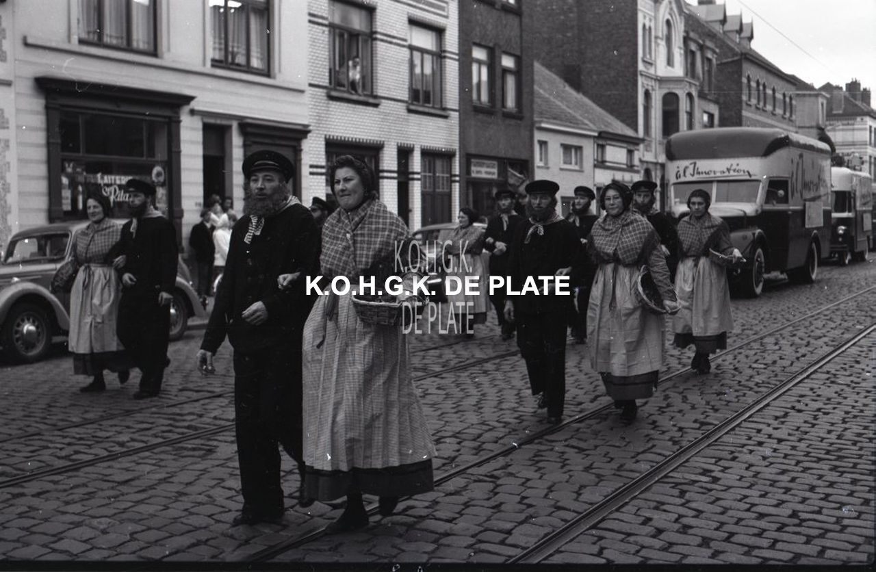 Negatief : 6 x 9 cm. - De folkloregroep "De Oude Ijslandvaarders" in de Torhoutsesteenweg.