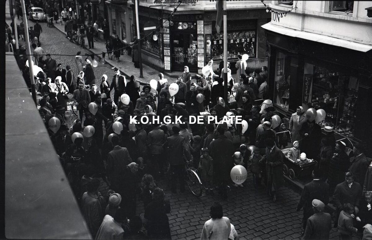 Negatief : 6 x 9 cm. - De stoet in de Kapellestraat en de hoek met de Sint-Paulusstraat.