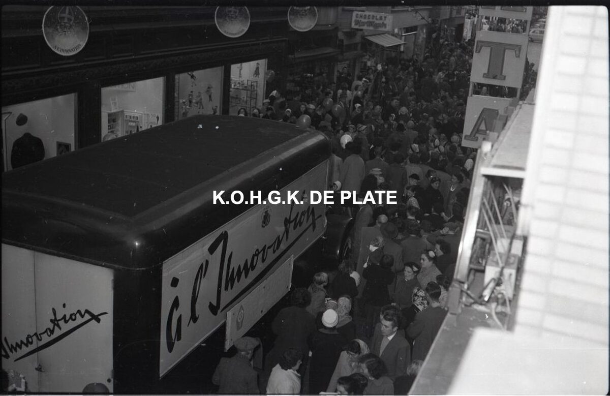 Negatief : 6 x 9 cm. - De stoet in de Kapellestraat nabij het warenhuis "A l'Innovation".