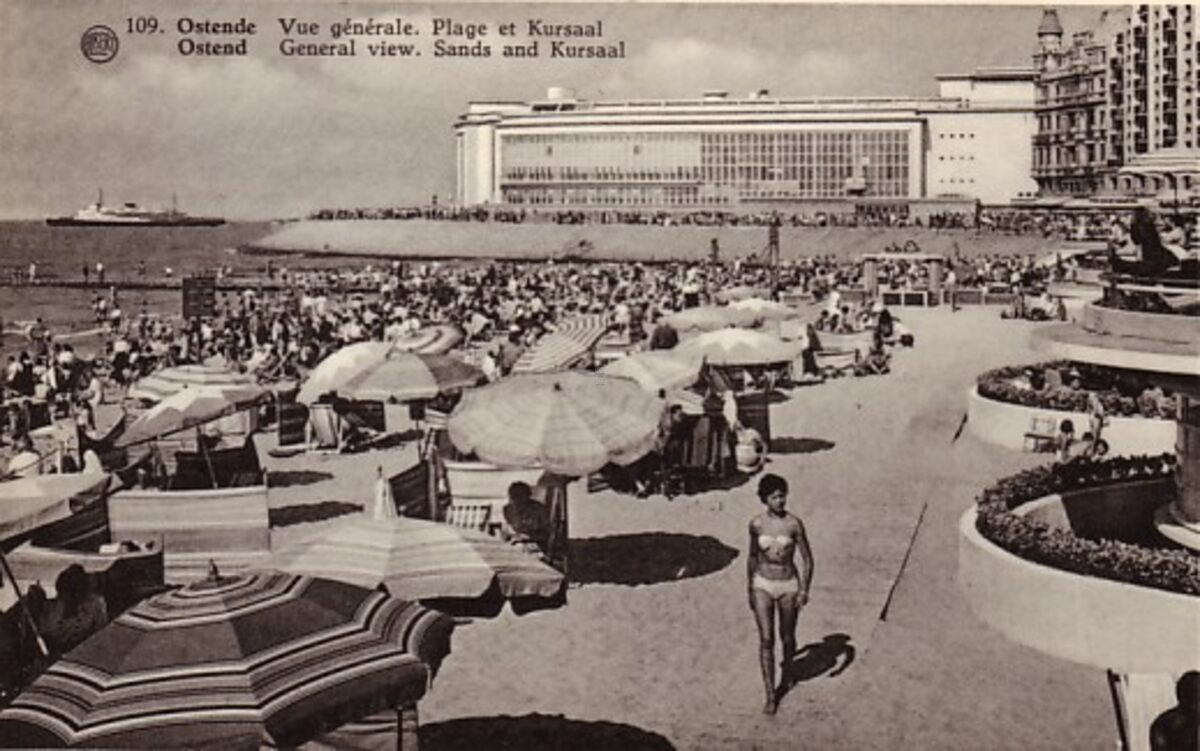 Albert 109. - Strandrecreatie op het Groot Strand nabij de badinstallaties. Op de achtergrond, de westgevel van het vierde Kursaal