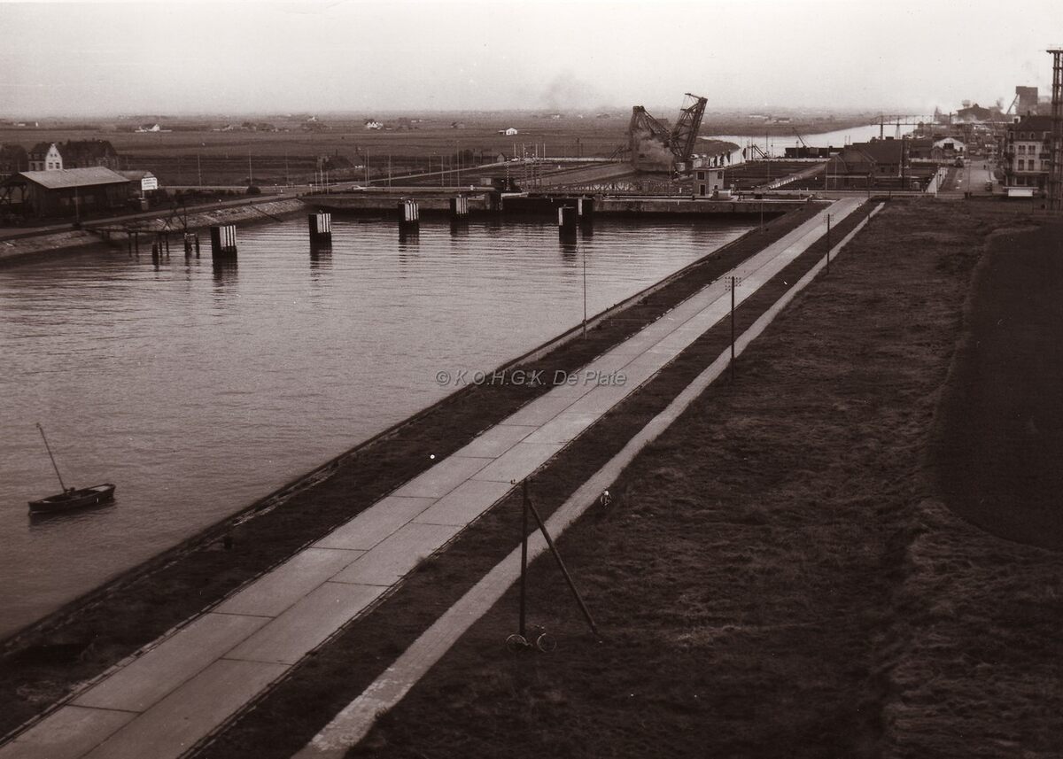 De zeesluis van de Zeebrugse haven gezien richting binnenland.