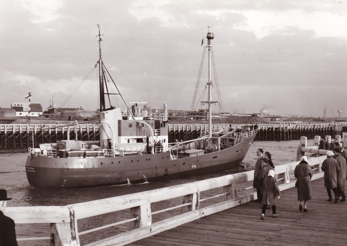 Formaat : 13 x 18 cm. - De Polarhav, het schip waarmee de Belgische expeditie naar de zuidpool voer, loopt de haven binnen.