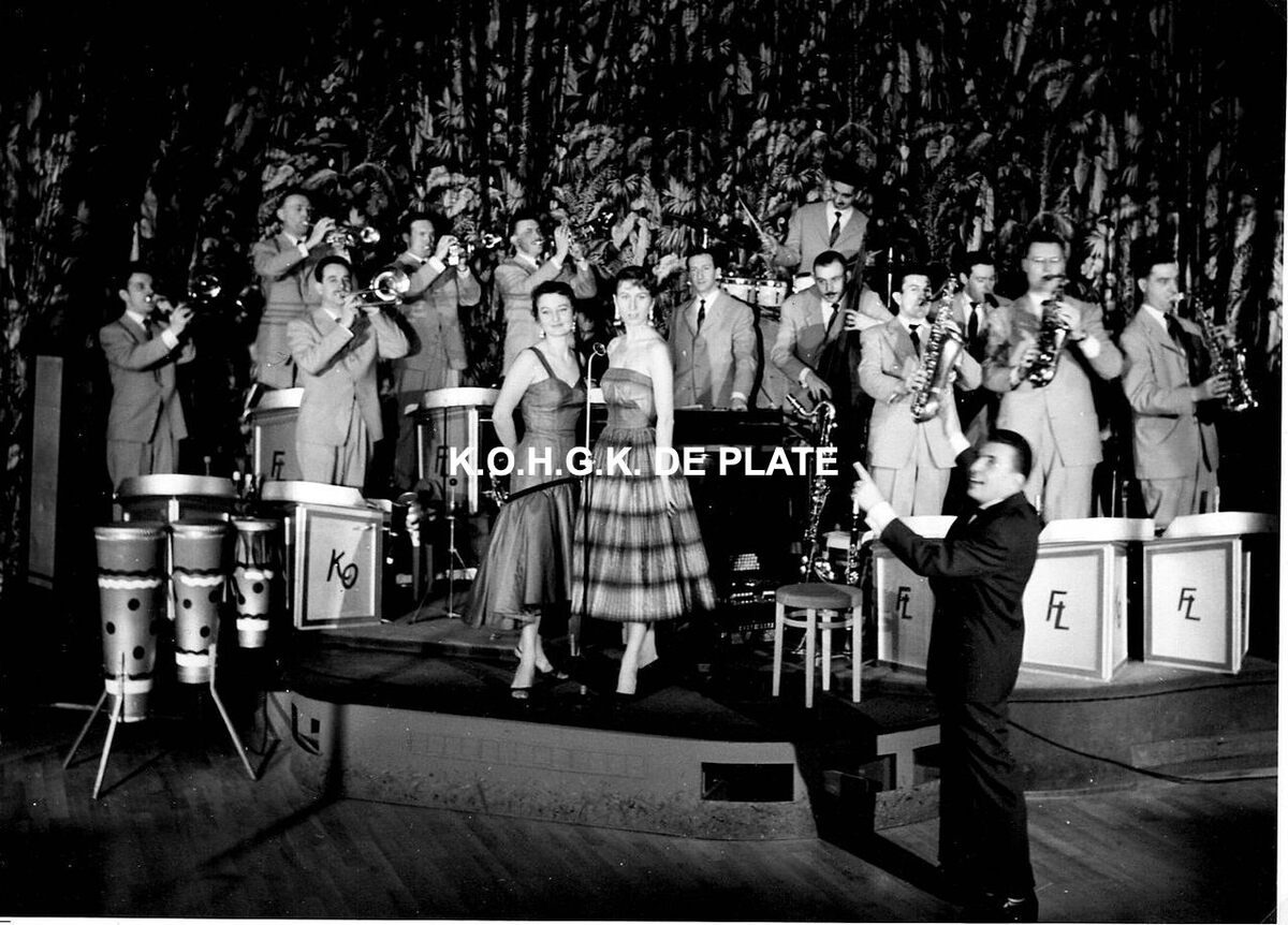 Formaat : 13 x 18 cm. - Hier in de nightclub "La Champagne". Met de zangeressen Babe Broke (links) en Linda Kerby (rechts)