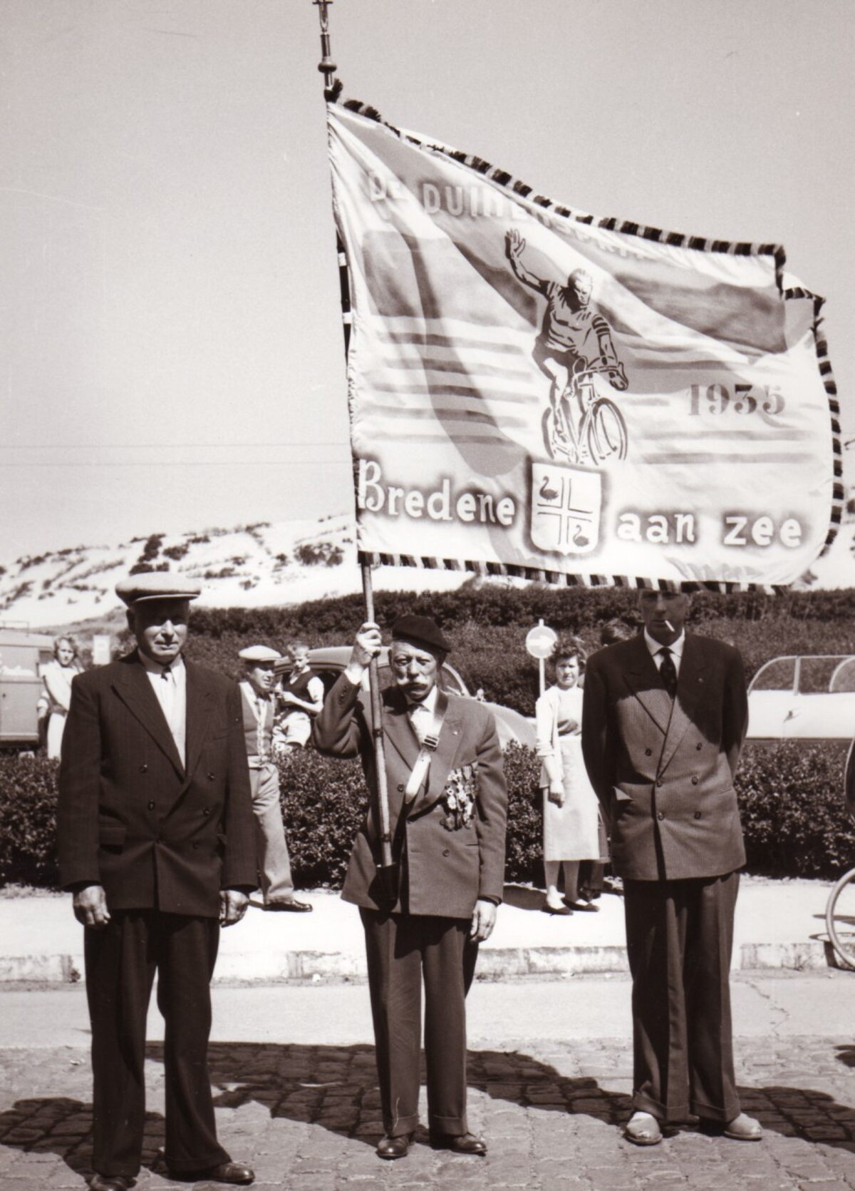 De vaandeldrager van de Bredense Duinensprinters aan de Koninklijke Baan.
