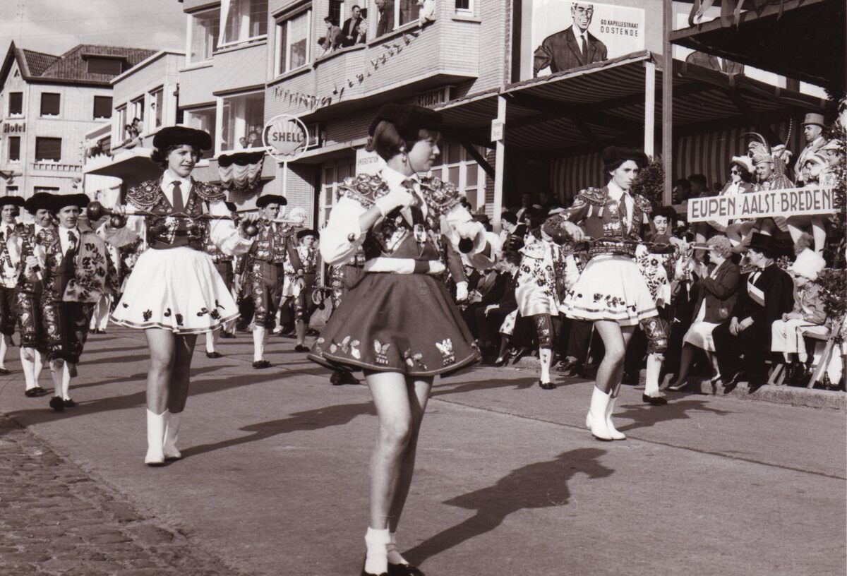 De "Toreadors" uit Hasselt aan de tribune tijdens een carnavalstoet.