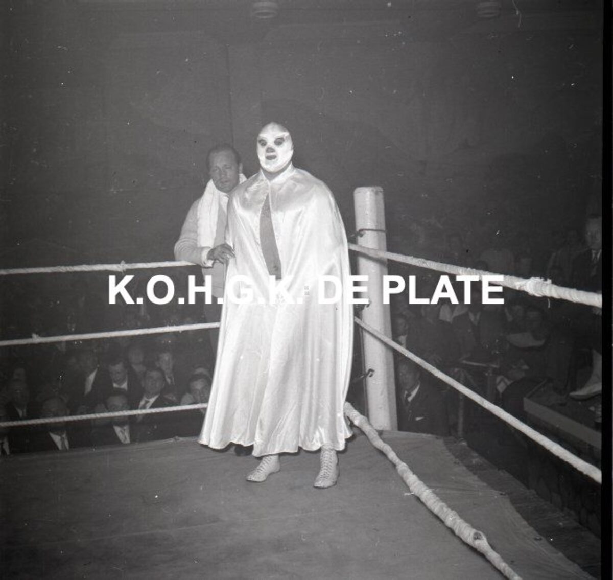Foto : Catch met "De Witte Engel = l'Ange Blanc". In 't Witte Paard. 1959