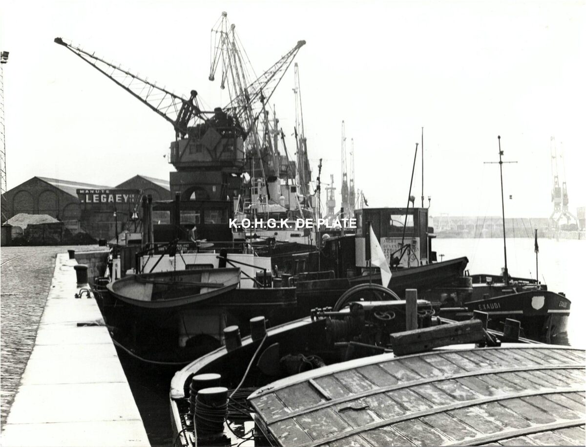 Formaat : 18 x 24 cm. Het Vlotdok. Links de Oostkaai en de firma Legaey.