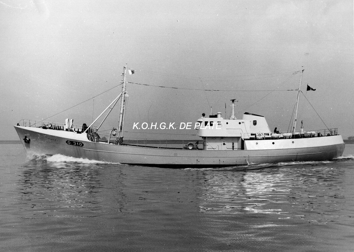 O.310 "M'Bizi". Stalen zijtreiler gebouwd bij Béliard-Crighton in 1961 voor de rederij "Armement et Pêche Maritime s.a." (Pemarco). Het had een bruto tonnemaat van 342,07 en een netto tonnemaat van 137,97. De lengte was 46,30 cm. Uitgerust met een Deutz motor (nr. 2751689-94), motorjaar 1960 en een vermogen van 900 pk. Voorzien van radiotelefonie, radotelegrafie, ultrasonore dieptemeter, radar en gyrokompas. Er kon langs stuurboord gevist worden. - Map 2009/0855-9