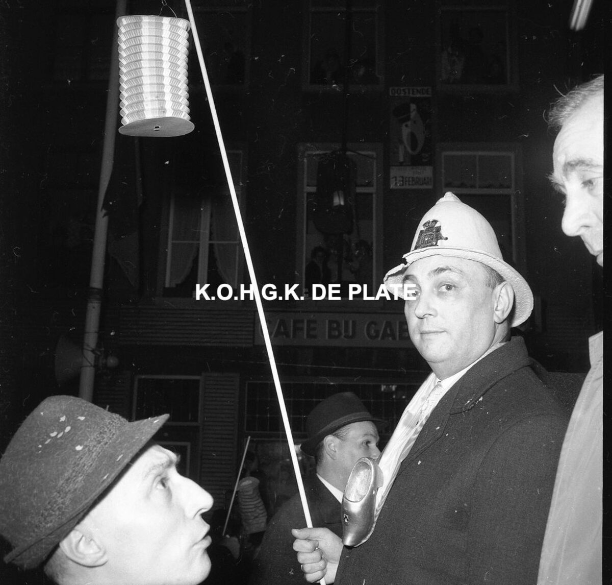 Negatief : 6 x 5,5 cm. -De olijke Theo Dehaene met zijn witte helm en cimateire, ook lid van de "Orde van de Kloeffe"