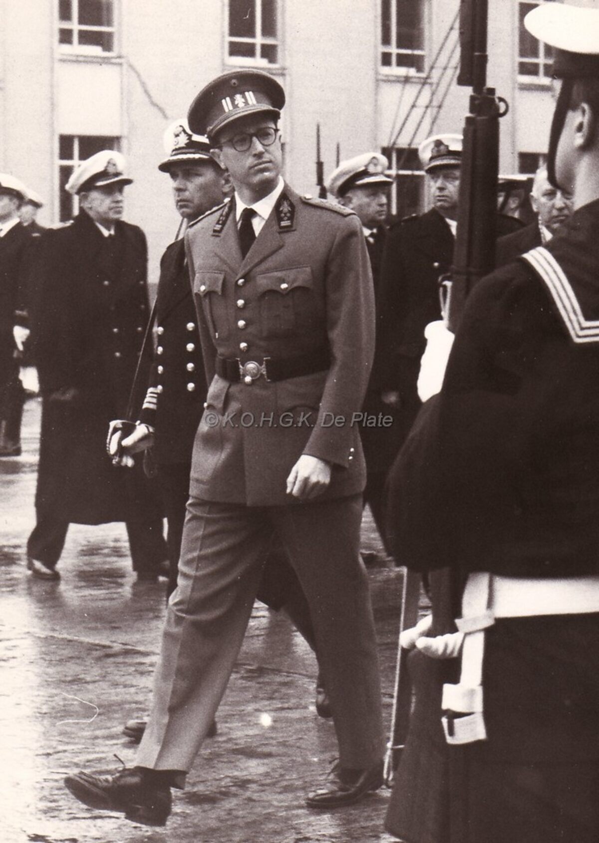 Koning Boudewijn bezoekt de Zeemacht te Oostende.