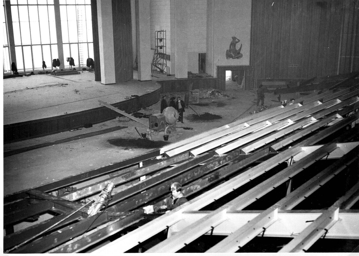 Foto : Verbouwen van de concertzaal tot auditorium. Kursaal Oostende. 1962