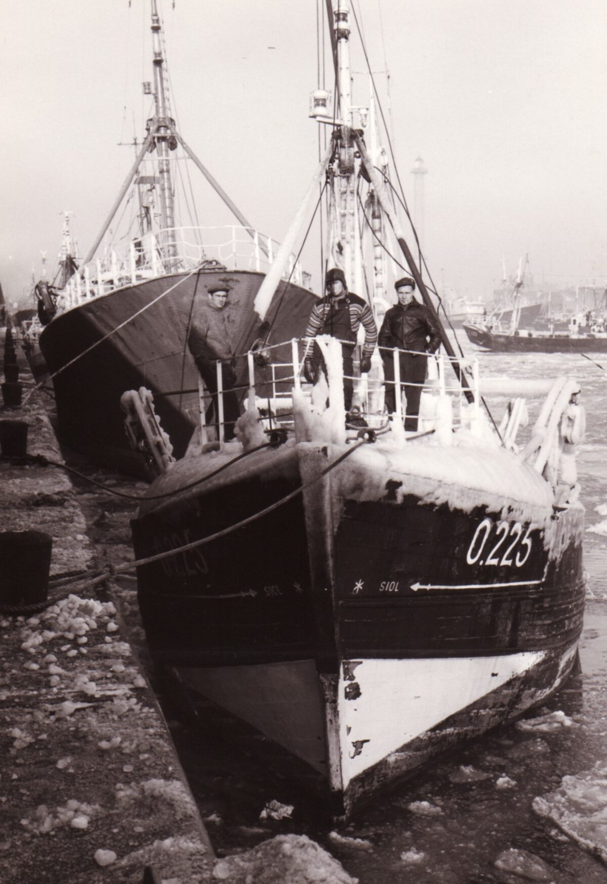 De O. 225 "Guido Gezelle" in het ijs in het Montgomerydok.