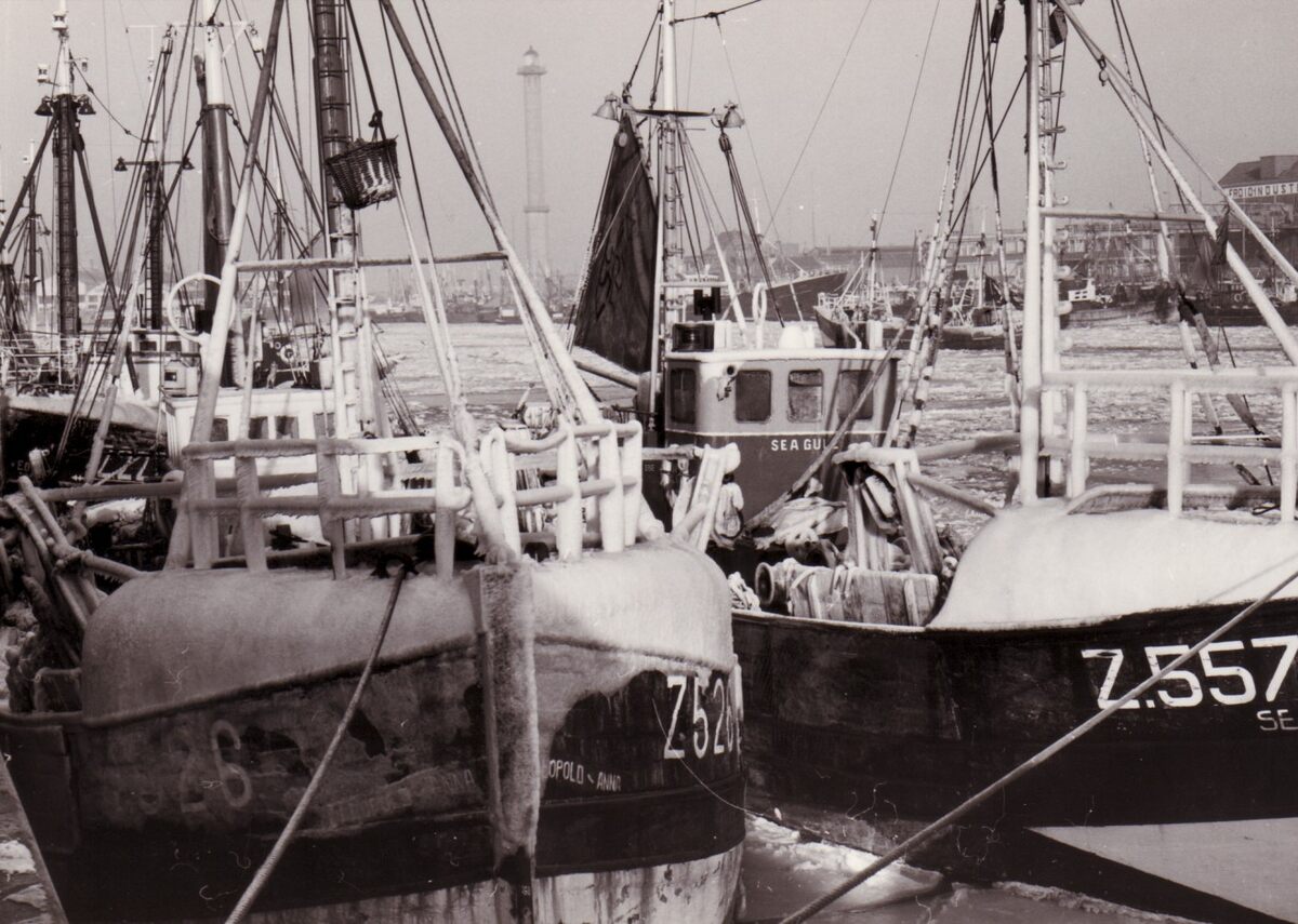 De Z. 256 "Leopold Anne" en de Z.557 "Seagull" aan de kaai in het bevroren Visserijdok.