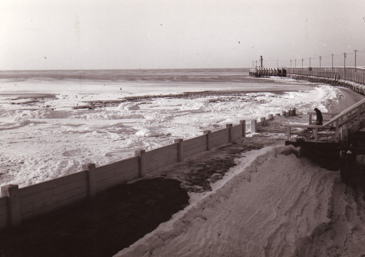 Het Klein Strand onder sneeuw en ijs, en rechts het Weststaketsel.