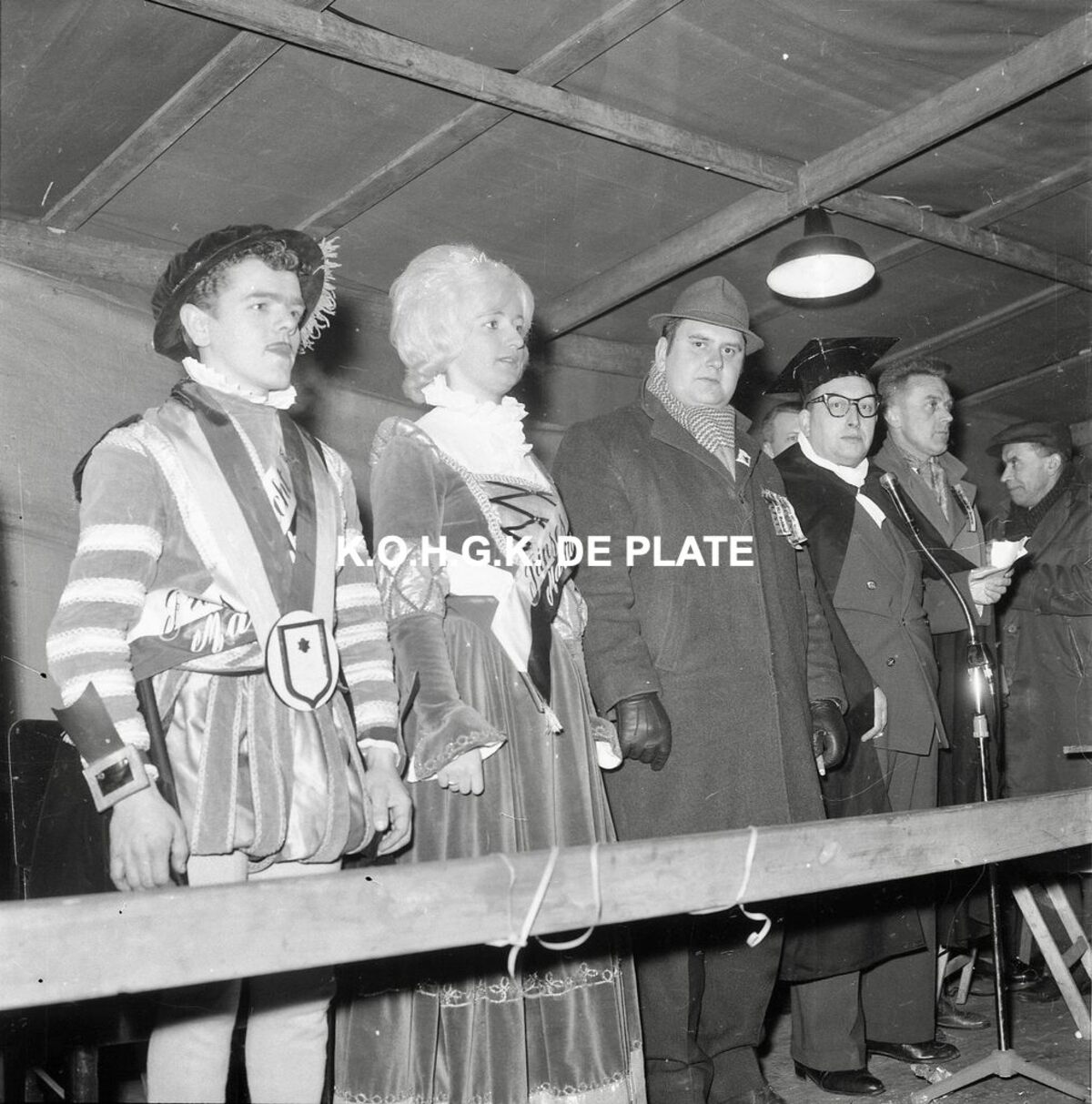 Negatief : 6 x 9 cm. - Het prinsenpaar Albrecht en Isabella van Mariakerke 1963 met naast hen, Norbert Van der Cruyssen