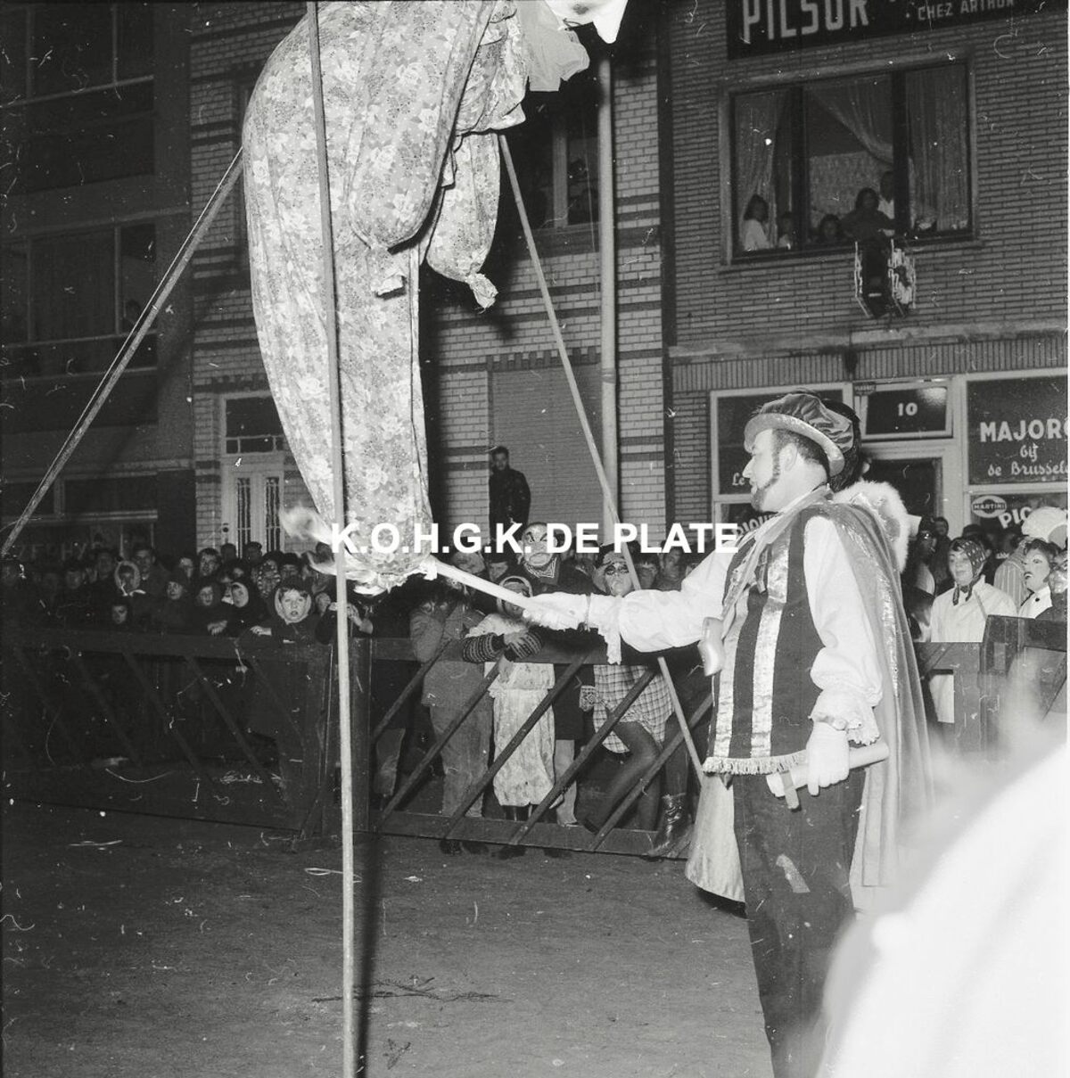 Negatief : 6 x 9 cm. - Gerard Dangreau steekt de pop in brand.