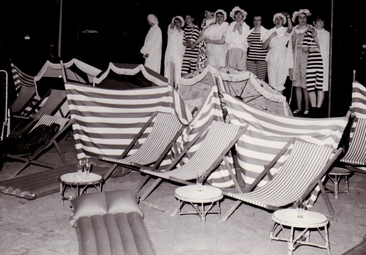 Een aantal bevallige Oostendse deernen verlenen allure aan het TV spel "Eén tegen Allen" op het Wapenplein, in een sexy (?) outfit.