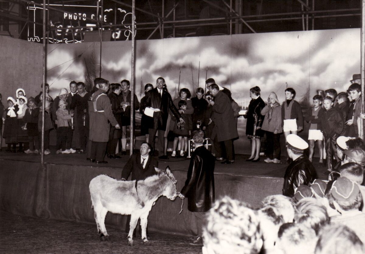 Een act uit het TV spel "Eén tegen Allen" op het Wapenplein. De regisseur geeft de laatste instructies.
