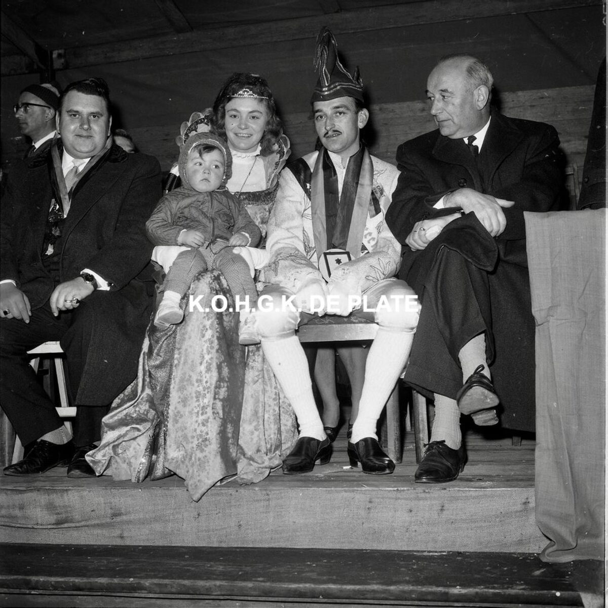 Negatief : 6 x 5,5 cm. - Het prinsenpaar Albrecht en Isabella van Mariakerke 1964 en kroost. Links, Norbert Van der Cruyssen en rechts, Kamiel Dehouck.