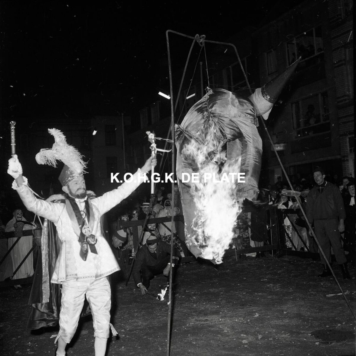 Negatief : 6 x 5,5 cm. - Prins Carnaval 1964 stak net de pop in brand.