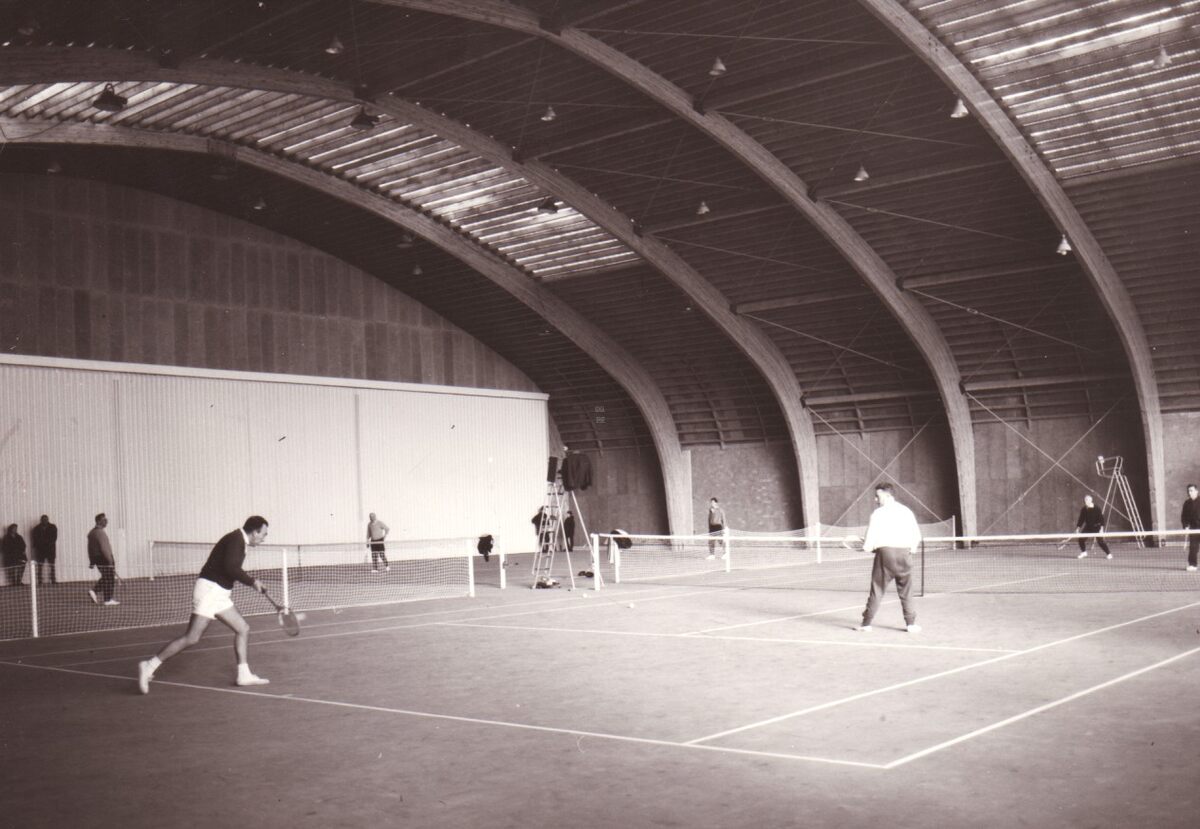 Een partijtje tennis in het nieuwe sportcentrum aan de Koninginnelaan.