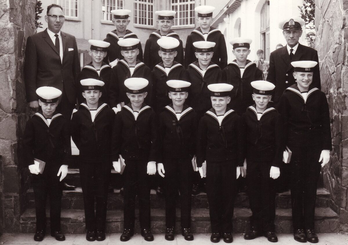 Formaat : 13 x 18 cm. - De plechtige communicanten van de Ibisschool. Links, directeur Hubert Caestecker.