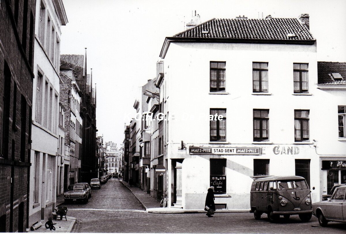 Formaat : 15 x 10 cm. - Café "Stad Gent" hoek Sint Franciscus- en Sint-Paulusstraat. Voordien, "A la Ville de Gand"