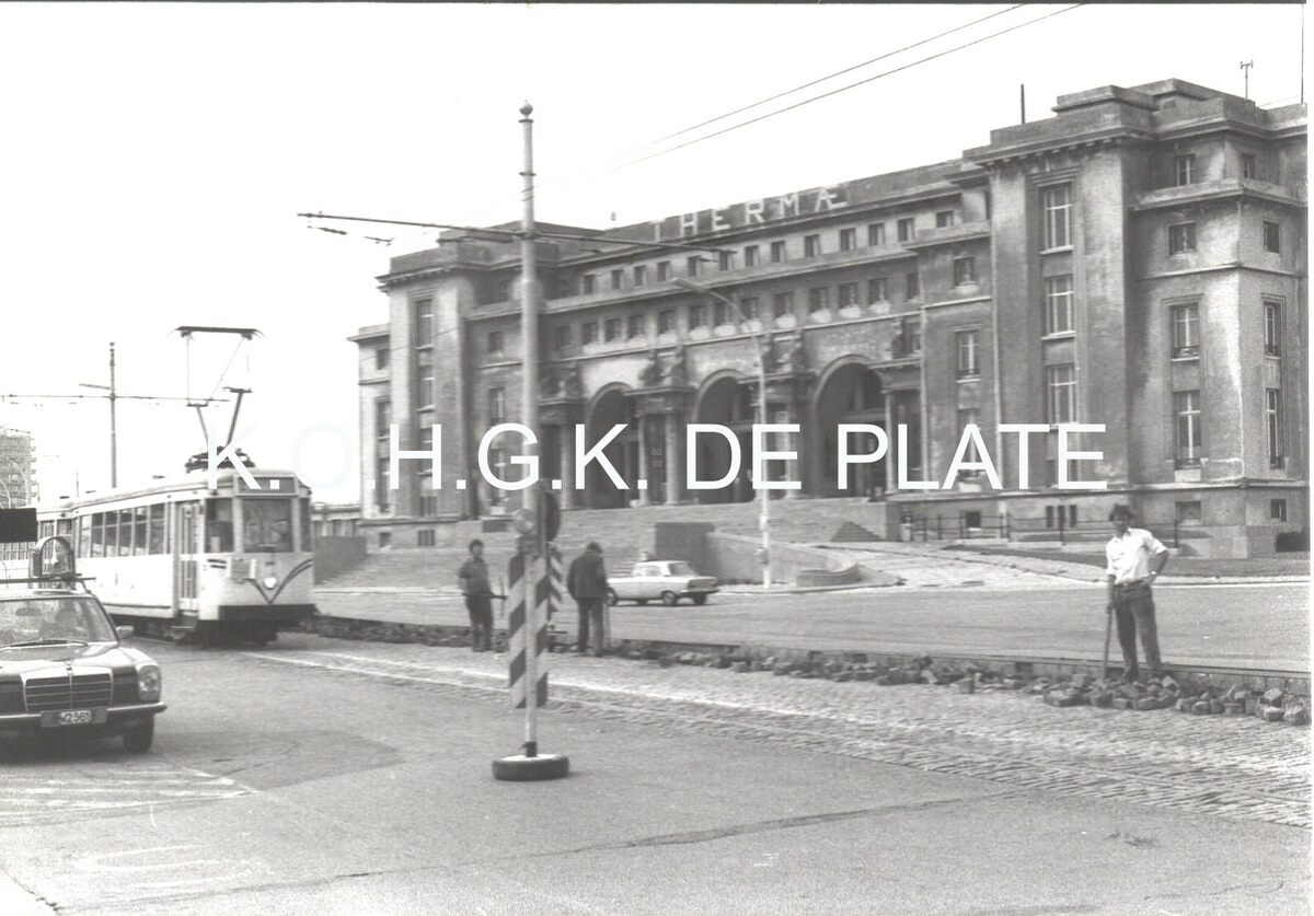 Formaat : 10 x 15 cm. - Er wordt gewerkt aan de tramsporen. Een tram komt uit de richting van De Panne