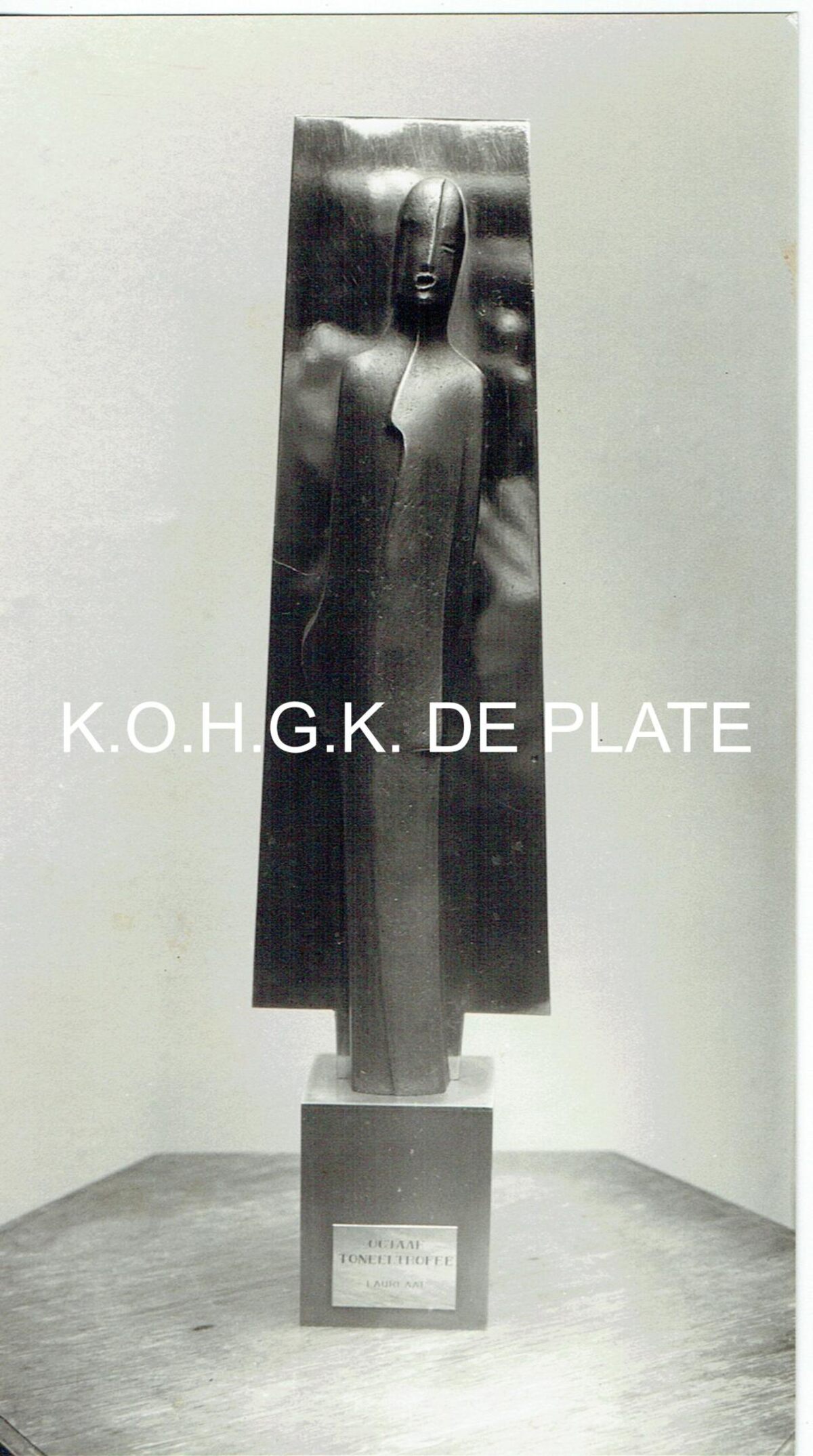 Formaat : 18 x 10 cm.- Beeldje "De Octaaf" toneel-trofee gecreëérd in 1986