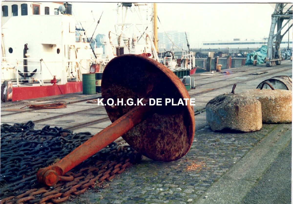 Formaat : 9 x 12,5 cm. - Lichtschip in het dok. Op de kade een "mushroom" anker