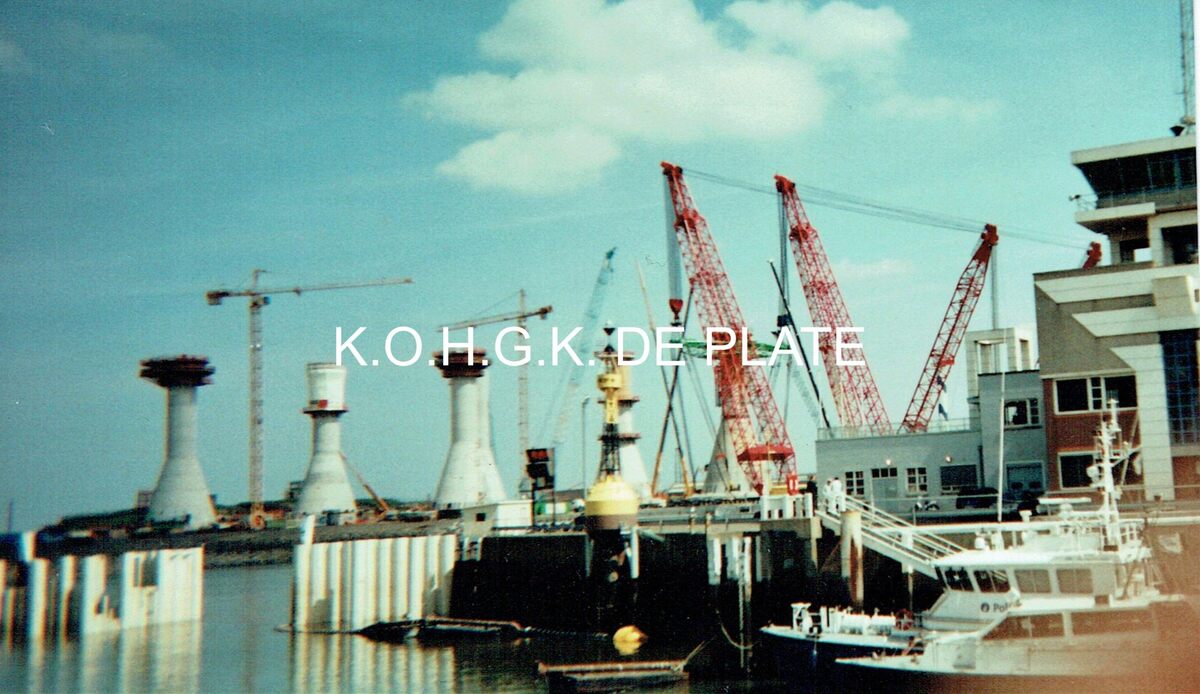 Formaat : 10 x 17 cm. - Bouwen van de zes betonnen sokkels voor het windmolenpark op de Thortonbank in de Noordzee