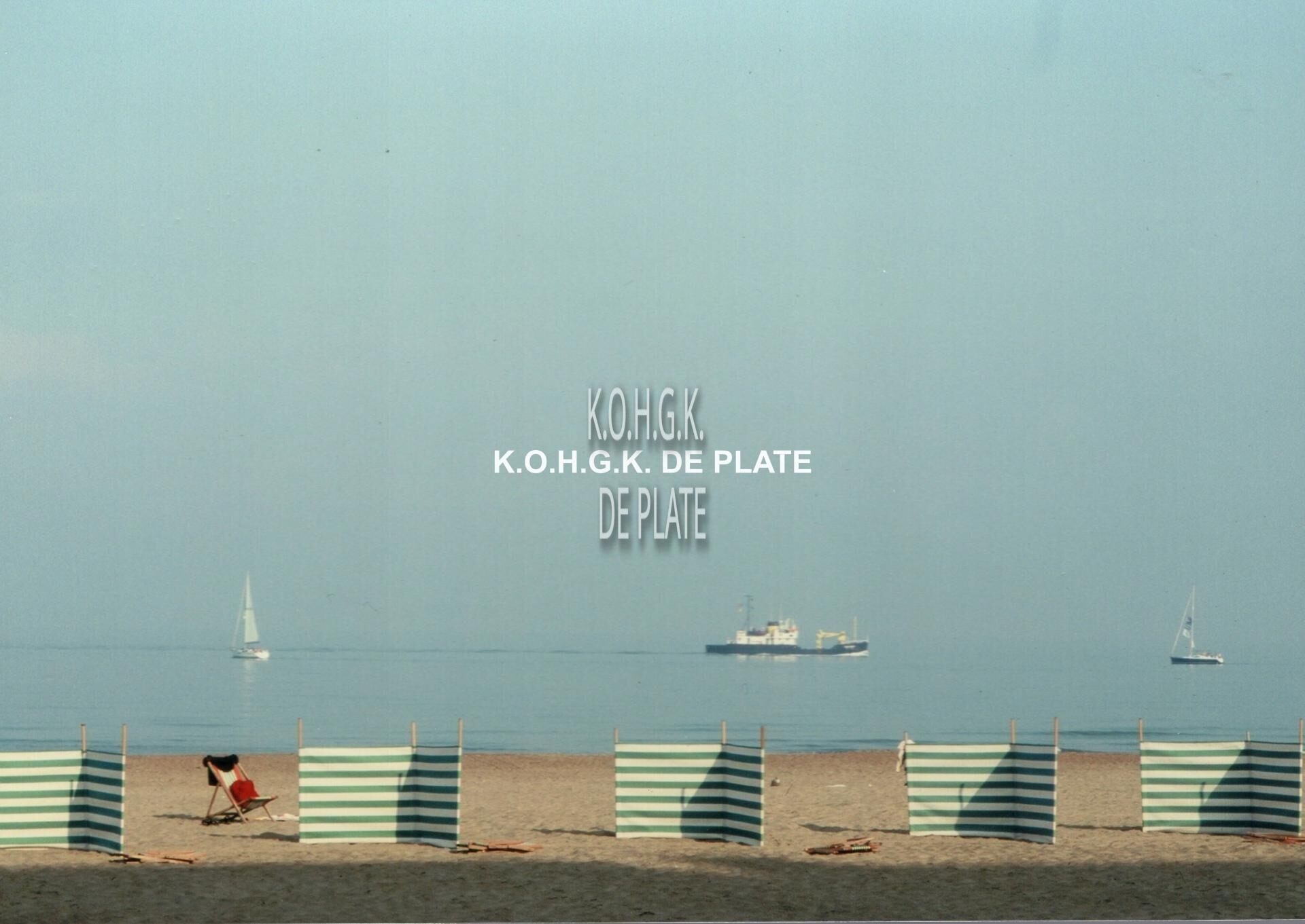 Formaat : 13 x 18 cm. - Genieten van de zon achter een strandzeil op het Groot Strand. een Vissersvaartuig en twee jachten in zee.