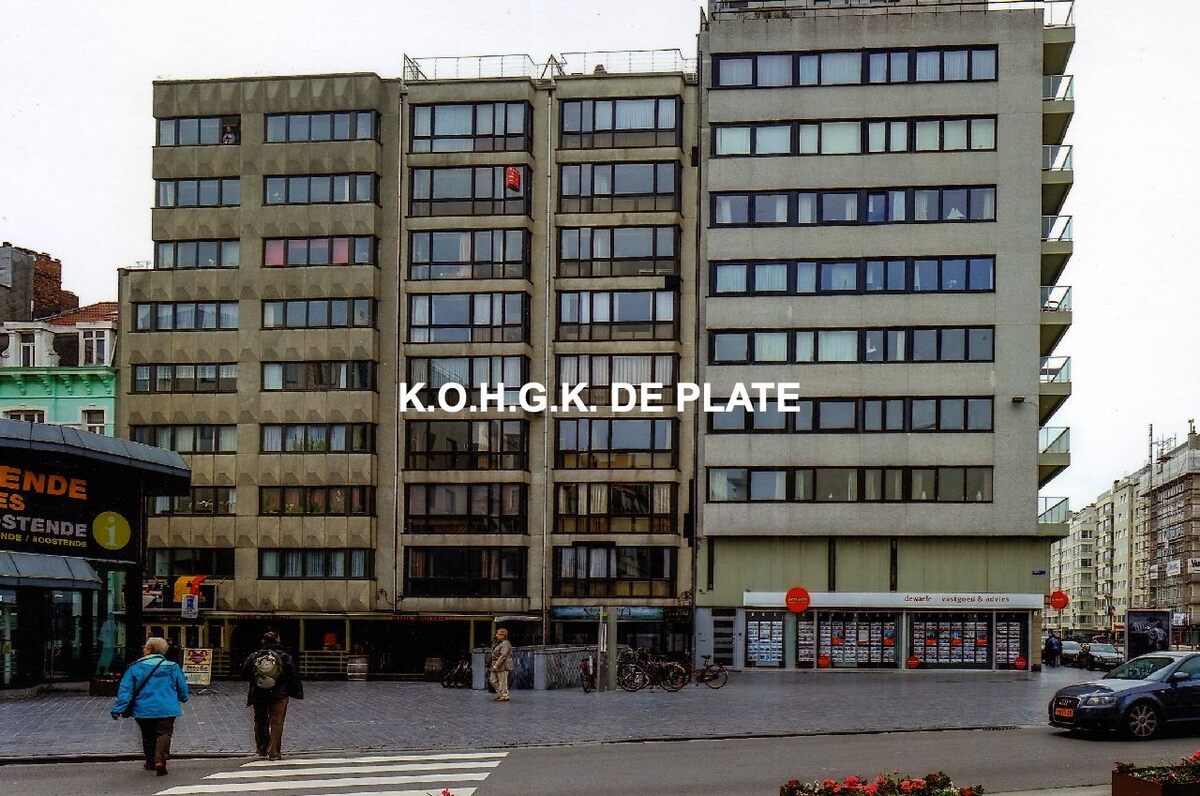 Formaat : 12,5 x 19 cm.- Monaplein, begin van de Langestraat en rechts de Leopold II-laan. Links een detail van het Bureau voor Toerisme