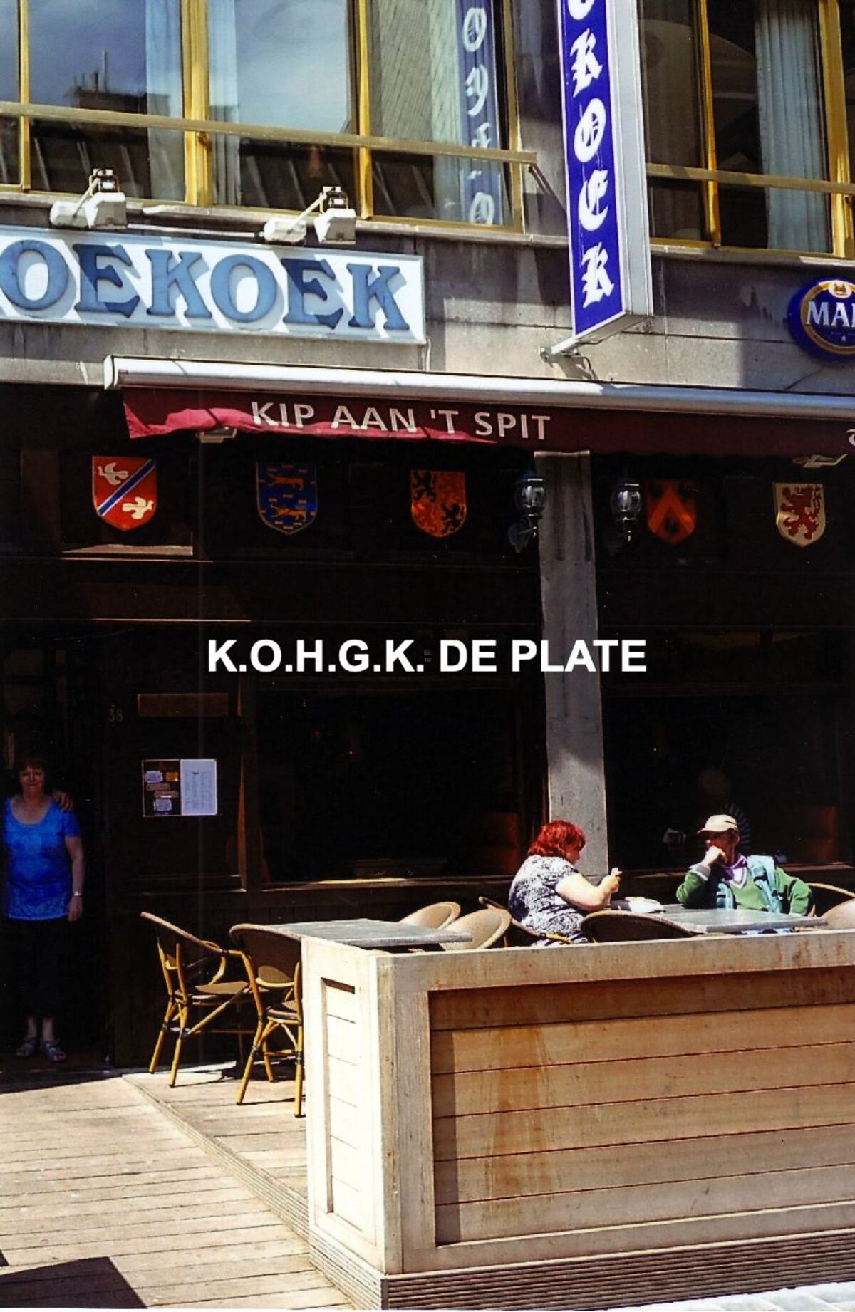 Formaat : 19 x 12,5 cm.- . Langestraat 38-40 : Terras van Taverne Koekoek op de hoek van de Lange- en Christinastraat.