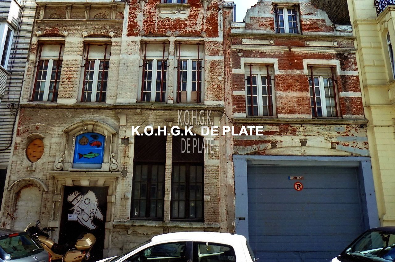 Formaat : 12,5 x 19 cm. - Langestraat 93 : Het handelspand dateert uit 1896, teruggaand op "Grand Parcs aux Huitres, Homards & Langoustines - Commerce de Poisson Frais & Salé" van Louis Janssens en Charles Mestdagh. Behoort sinds 2009 tot bouwkundig erfgoed.