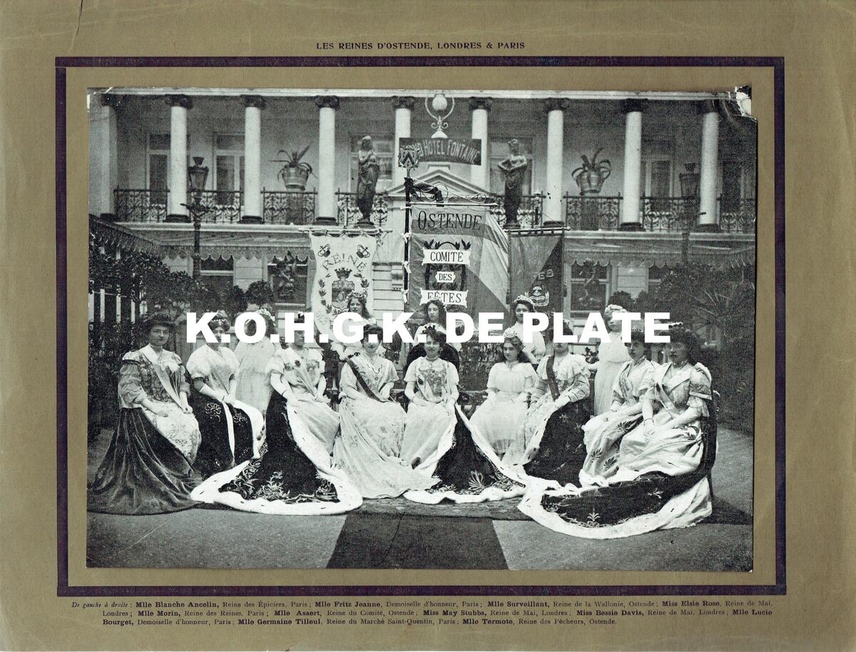 Formaat : 26 x 19cm. - Les reines d'Ostende, Londres et Paris. Schoonheidskoninginnen van Oostende, Londen en Parijs poserend op de binnenkoer van Grand Hotel Fontaine