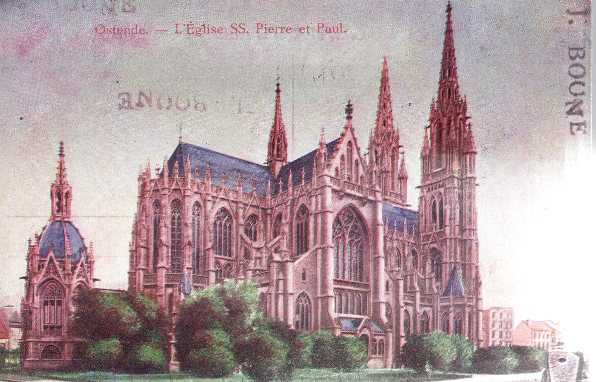 Ostende. L'Eglise St Pierre et Paul. - Bijgekleurdekaart