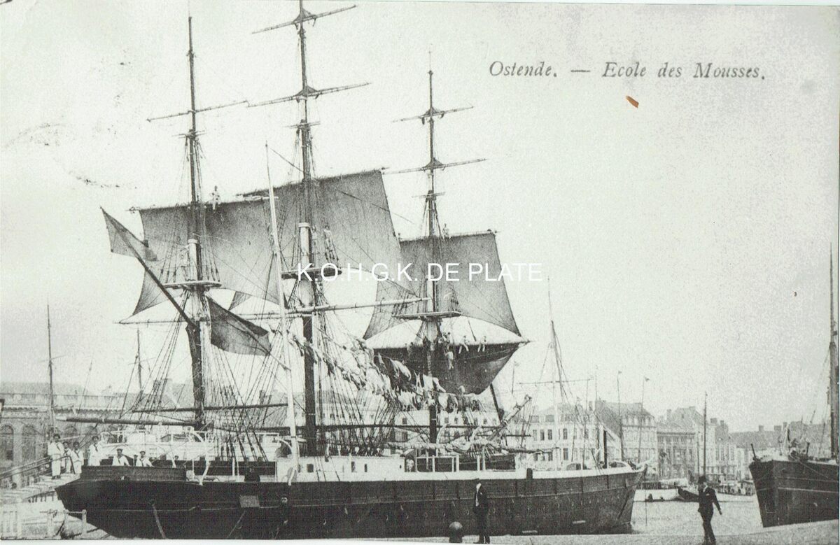 Afdruk van postkaart. - Formaat : 15 x 23 cm. - Het schip ligt in het tweede handelsdok aangemeerd, op de achtergrond de Keizerskaai, thans Vindictivelaan