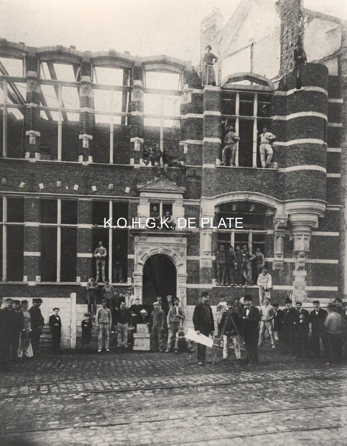 Formaat : 22 x 14,5 cm. - Gebouwd door de aannemers Gebr. Demeyer uit Gent in opdracht van het Ministerie van Spoorwegen, Post, Telegrafie en Marine. In dit gebouw waren drie diensten ondergebracht, elk met een eigen ingang: de Loodsdiensten (Vindictivelaaan), het Zeevaartcommissariaat (Hoek Vindictivelaan-Zuidstraat; met een monumentale ingang waarboven een balkon) en de Zeevaartschool (Zuidstraat). Tijdens de Tweede Wereldoorlog (mei 1940) werd het gebouw zwaar beschadigd: heel het hoekgedeelte werd met de grond gelijk gemaakt.