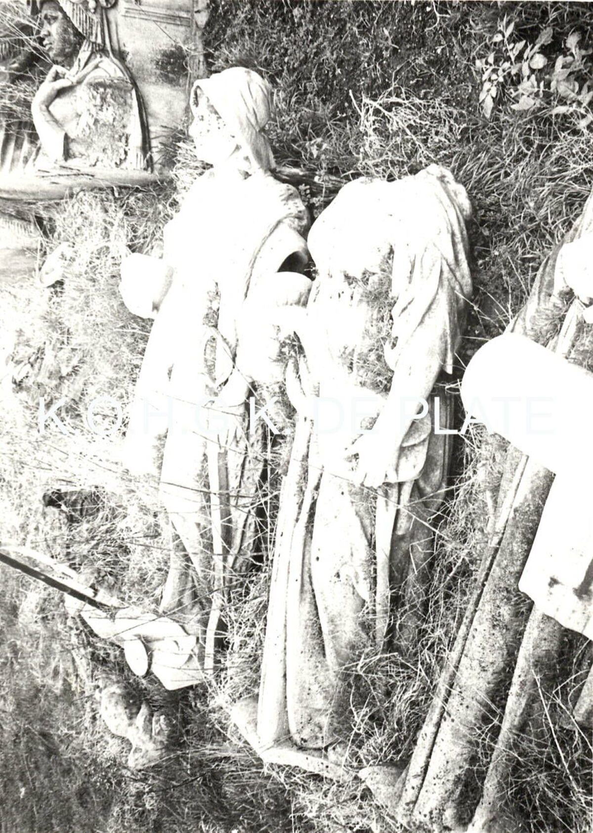 Formaat : 12 x 8 cm. - Deze beelden stonden tot 1944 op de gevel van het toenmalige postgebouw en kregen in 1984 een plaats in de middenberm van de Koninginnelaan