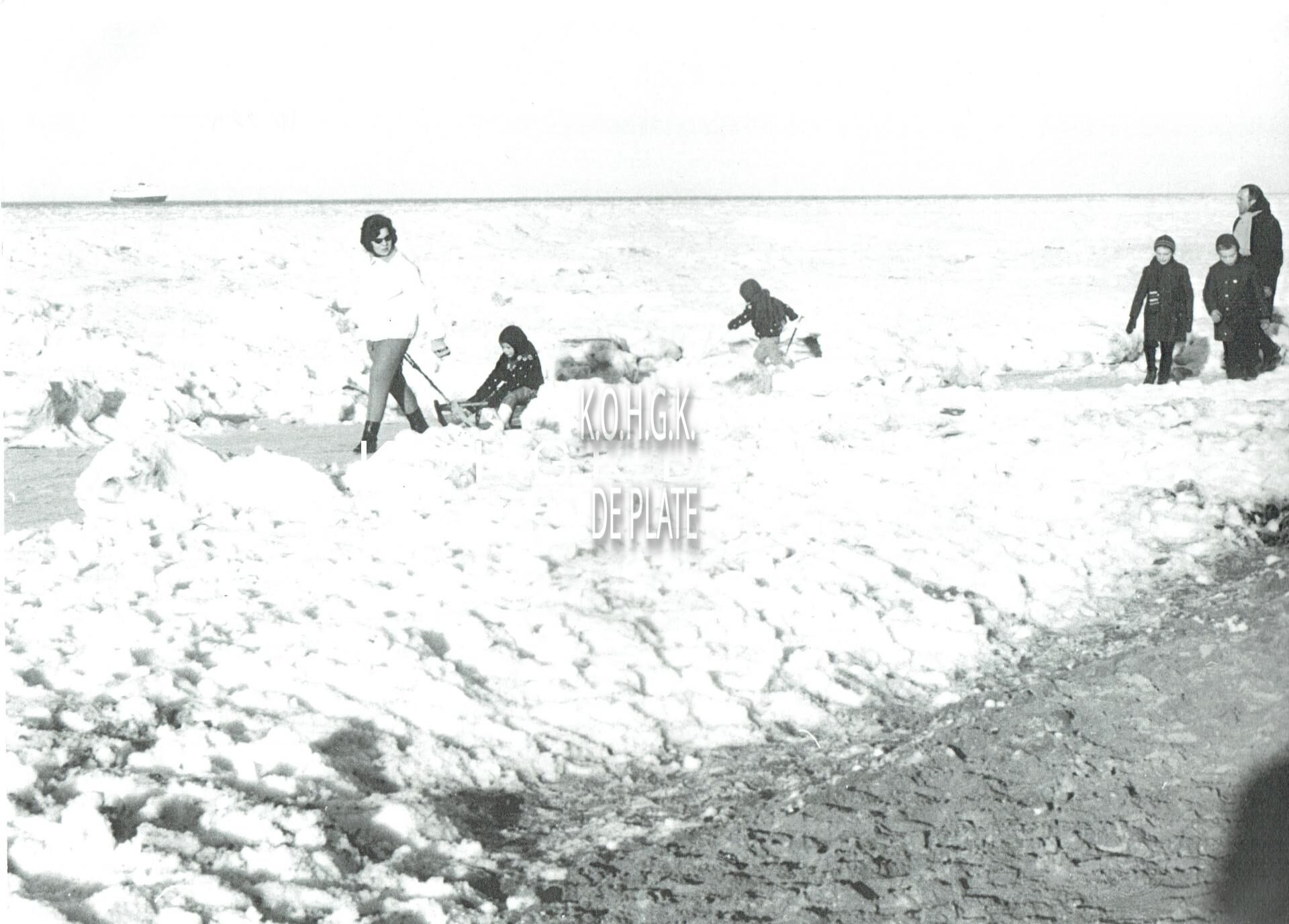 Vergroting. - Formaat : 29,5 x 40cm. - Plezier op het groot strand in de sneeuw