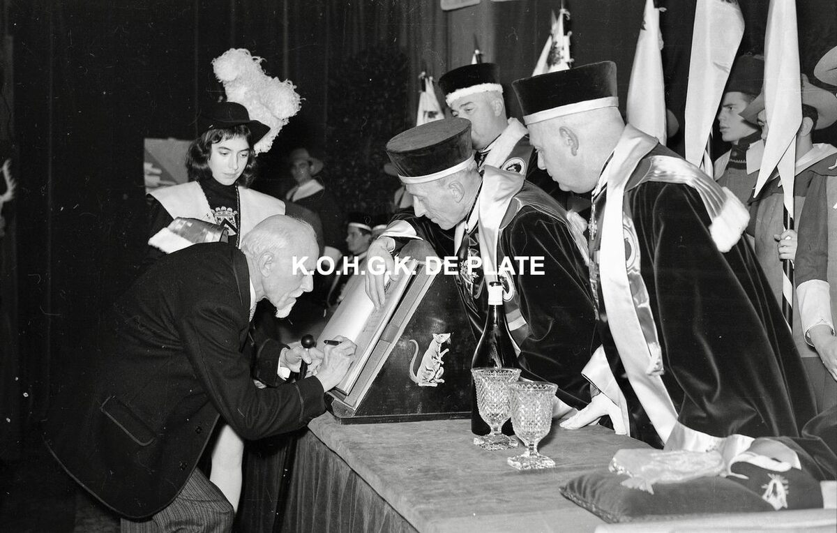 Negatief : 6 x 9 cm. - Emile Bulcke wordt ridder van de "Confrérie van de Rat Mort"